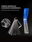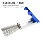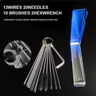 Description: *1. Material: 304 stainless steel and nylon bristles *2. Carrying Case Size: 10.2 x 2.3 x 1.2cm /4.02 x 0.91 x 0.47in *3. Brushes Diameters: Approx.(2mm)0.08", (3mm)0.12", (4mm)0.16", (5mm)0.2", (7mm)0.27" *4. Brush Length: Approx.(8.5cm)3.35" *5. Hex Wrench Length: Approx. (6cm)2.36" *6. Needles(10pieces) Length: Approx.(11cm)4.33" Features: *1. This kit can be used multiple times, durable and practical. *2. Made of stainless steel, resistant to rust and easy to clean. *3. Spiral bristles do not come off easily. They can enter small spaces, making the cleaning clear and thorough. *4. Used to clean small orifices such as jets, nozzles, air tools, camping stoves, and so on. *5. There are different sizes and enough quantities for your daily use, meeting your different needs. Package Includes: 1set: 2x Cleaning Needle(16PCS) 1x Cleaning Brush(13PCS) 2set be send Kindly Notes: *1. Please compare the details before purchase. *2. Due to the lighting and screen settings, the real color may slightly different from the picture. *3. Please allow slight size differences due to different manual measurement. Look , You may also like Car Tire Rim Scrub Brush Auto Wheel Hub Brush Cleaning Tool Soft Wash Cleaner 11.66 USD 12.96 USD Free shipping 10% off