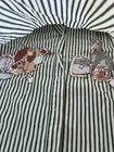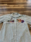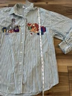 Pre-owned vintage condition. • Visible staining on lower front area (see photos) • Shirt has been washed; stains did not fully lift • No holes noted • Embroidery in good condition • Structurally solid Please review all photos carefully. ⸻ Description Vintage Disney Store button-down shirt featuring embroidered Lady and the Tramp characters across the chest. Details: • 100% cotton • Green and white vertical stripe • Full button front • Classic collar • Made in Hong Kong • Embroidered character graphics (not printed) Great for: • Disney collectors • 90s nostalgia lovers • Theme park outfit • Layered oversized styling Because of the staining on the lower front, this is priced accordingly. Still a great wearable or collectible piece. Ships quickly and packaged with care.