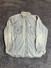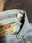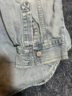 This is a Levi's 90s-themed T-shirt for men in size XL. It is a blue T-shirt with a unique button accent on the sleeve. Please note that one button cover on the sleeve is missing. See other imperfections in the photos