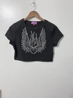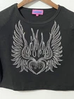 CROPPED DIAMOND T-SHIRT cuz it's all about that bling bling! Sparkle in this tee that has a crew neckline, short sleeves, a diamond applique winged heart design on the front, and a cropped fit. MATERIALS 45% POLY 45% RAYON 10% SPANDEX CARE Hand Wash Cold, Hang Dry Looks almost new!