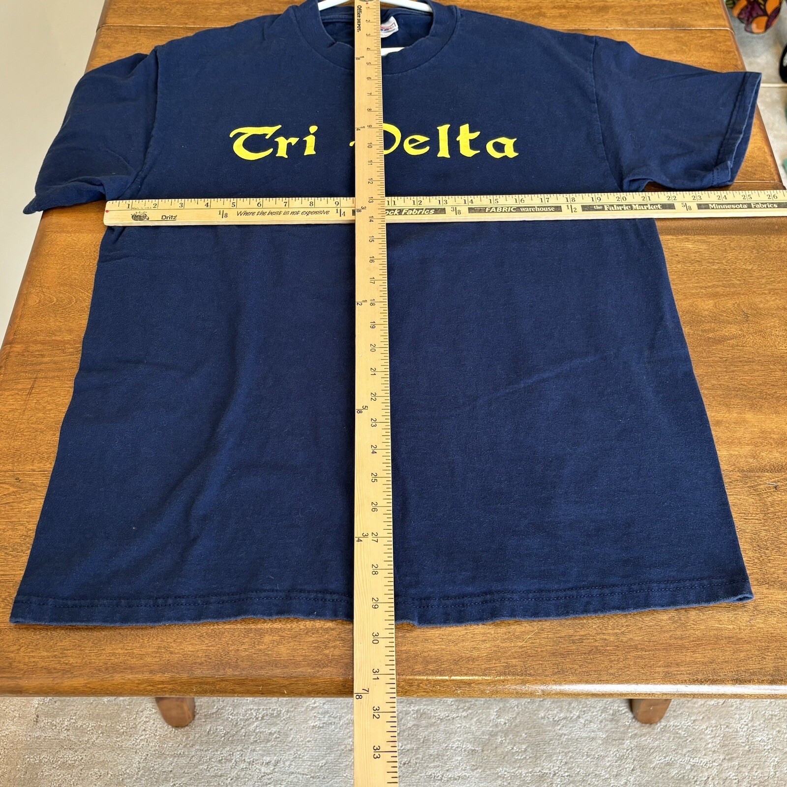 This VTG 90s Tri Delta T-shirt in size L is a vintage blue unisex shirt featuring the Ole Miss The Gin Oxford Party design. Made of 100% cotton jersey fabric, this short sleeve T-shirt has a crew neck and pullover closure. Perfect for travel, parties, casual wear, this retro style shirt is machine washable and fits in a regular size. The shirt also carries themes of 90s, university, sorority, and parties, making it a fun and stylish addition to any wardrobe.