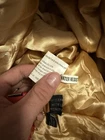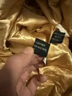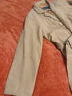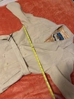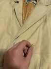 This 90s Vintage GERONIMO Soft Leather Duster Style Trench Coat in cream tan is a stylish and versatile addition to any woman's wardrobe. Made from high-quality leather with a nylon lining, this coat features a solid beige color and button accents. The vintage design gives it a unique charm, perfect for those who love retro fashion. With features like belting, pockets, and suitable for all seasons, this trench coat is both practical and fashionable, making it a must-have for any fashion-forward individual. Few scuffs on the leather in certain areas and one button that is a little loose. Looks great still. measurements seen in photos.
