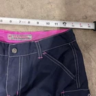 The product is a pair of vintage 90s rave navy and pink parachute cargo pants in size 1, designed for juniors. The pants feature a vibrant pink color with a cargo style, perfect for women who want to add a pop of color and a retro touch to their outfit. The brand, AND, known for its unique and trendy designs, is sure to make these pants a standout piece in any wardrobe. Sku 1941