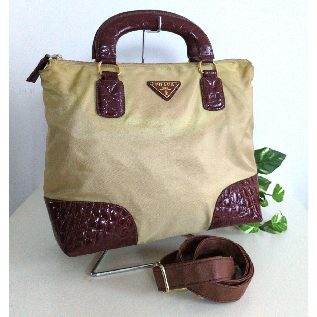 90s Old PRADA Nylon Stamped Leather Handbag Beige Brown Shoulder Strap About This Items ■Please see photos for product details. ■Made in Italy ■Color: Beige Brown Material: Nylon Leather ■Size: Beige Brown Width 13.4in/34cm, Length 10.6in/27cm, Gap 4.1in/10.5cm ■Accessories: Shoulder strap ( Extra ) Condition ■Used Slightly scratched and dirty. Used but relatively good. PAYMENTS We accept PayPal and all major Debit / Credit Cards. We can only ship your item after your payment clears. We ship within 10 days of payment. CHECKOUT Please check your address before paying because we can ONLY ship to addresses that are entered before placing the order. We cannot change an address after the order has already been placed. Shipping Packages:Box and BubblerupPackages usually leave our warehouse within 10 days of payment. Weekend orders will ship on Monday or Tuesday. We provide valid Tracking Numbers for all orders. We always send the item with a tracking number. So please place an order without any concern on delivery. You can always track the delivery status. Shipping is only available to the address registered in eBay. If you want us to send another address, please change your address on eBay and then place an order. Shipping is available from Monday to Friday. Weekends are not available because freight (shipping) companies are closed. We do not mark merchandise values below value or mark items as gifts Japan, US and International government regulations prohibit such behavior. If your address is in the remote areas defined by the freight (shipping) company, please pay the additional shipping fees with PayPal. International Packages We ship to all US Territories, Europe and Asia and Middle East and Australia and Canada including Guam and Hawaii.All our international packages ship under the Fedex and Japan Post and UPS and DHL. CUSTOMER SERVICE If you have any questions or issues, we are at your service. You can email us anytime through eBay messages. RETURN INFORMATION We offer a standard FREE 30 days refund or exchange policy. Item must be returned in original condition in order to receive a full refund. CUSTOMS DUTY Import duties, taxes, and charges are not included in the item price or shipping cost.These charges are the buyer's responsibility.Please check with your country's customs office to determine what these additional costs will be prior to bidding or buying.We will reply to your question or invoice within 3 days.We can't not reply gifts or unreasonable requests such as declared amount.