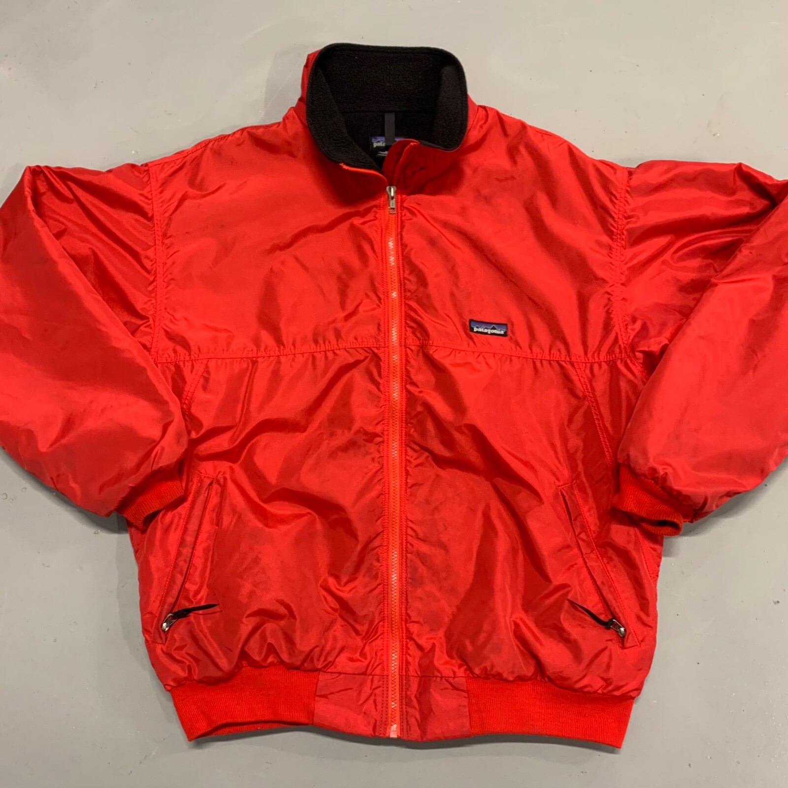 Expect Signs of Age and Wear; stains throughout (pictured) Vintage 90s Patagonia Full Zip Bomber Fleece Lined Coat Jacket Red / Black 2 Side Zip Pockets Men’s Size XL Pit to Pit 25" Shoulders Across 22" Shoulder to Hem 29 ”