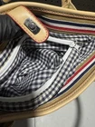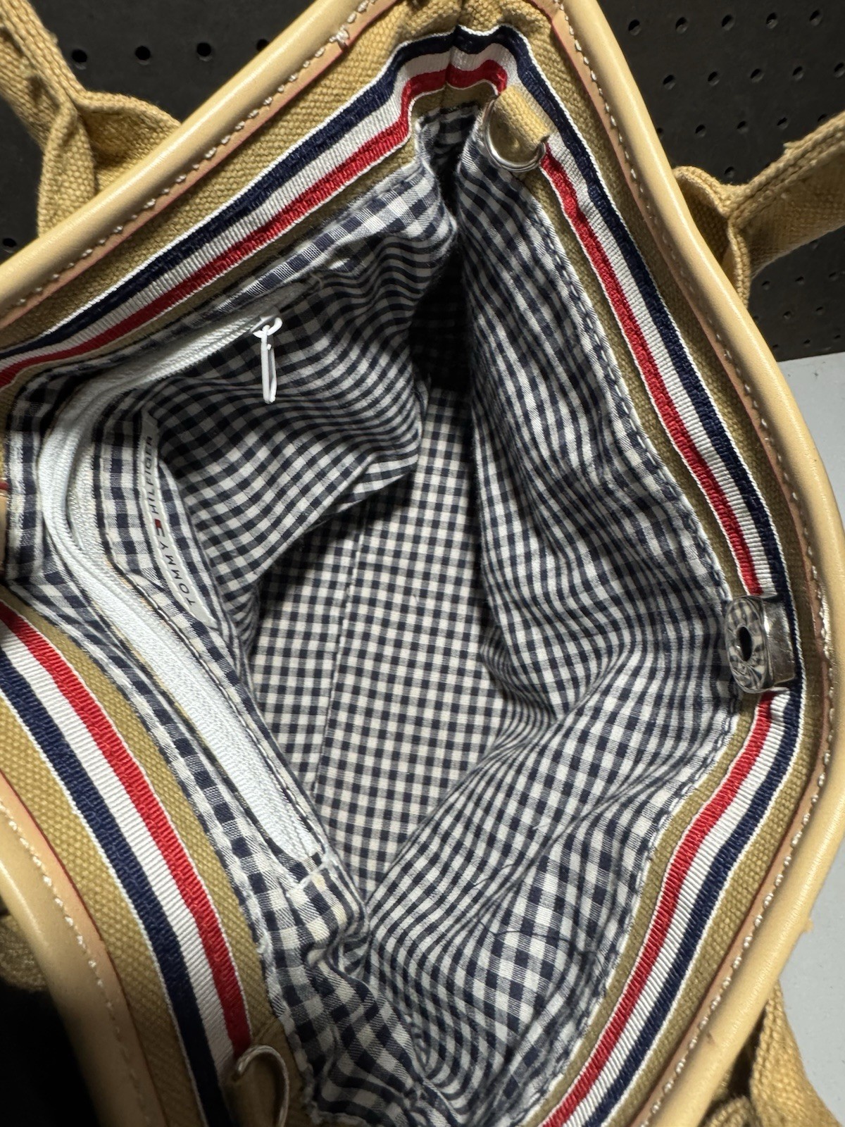 Crafted for those who appreciate the nostalgia of the 90s, the Vintage 90s Y2K Tiny Tommy Hilfiger Bag is a timeless accessory in a chic tan hue. Its durable canvas exterior, complemented by an eye-catching red faux leather trim, embodies the classic aesthetic of the era. The roomy interior is lined with a blend of canvas and fabric, ensuring your belongings stay secure and organized in the ample space. The tote boasts a solid pattern with a sleek zip closure, making it ideal for casual outings. Tommy Hilfiger's signature style is evident in the design, from the rectangle shape to the subtle accents of the zipper. This piece is a true testament to the enduring fashion of the past, with all its attributes reflective of its vintage appeal.