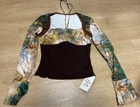 Step back into the iconic 90s with this chic vintage women's crop top , perfect for adding a touch of retro flair to your wardrobe. Featuring a grunge-inspired brown color with a delicate floral print, this top brings both style and nostalgia together. The square collar adds a unique twist, while the long flared sleeves enhance its vintage charm. Whether you’re pairing it with high-waisted jeans or a skirt, this top is a versatile piece that can be dressed up or down. Don’t miss out on this timeless gem from the 90s! Features: Vintage 90s-inspired design Grunge brown color with floral print Square collar for a unique look Long, flared sleeves for a dramatic flair Crop style perfect for pairing with high-waisted jeans or skirts Condition: new in great condition , Ready to bring retro vibes to your collection! Get this vintage beauty today and make it a staple in your wardrobe!