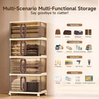collapsible bin extra large storage bins with lids plastic cabinet storage big storage bins for dorm home craft storage closer organizers and storage outdoor towel storage small space storage dorm supplies storage 4 Tiers Large Capacity&Small Space:Stackable Storage Bins measure 26" in length and 16" in width, designed for boasting a small footprint but maximize space efficiency by 55.1" height. And 3-pack stackable cabinet provide up to92.4 Gal/370Q large capacity, perfect for everyday items likes clothes, small appliances, crafts, yarn, and other household items. Whether in the living room, bedroom, office, or indoor garage, these storage bin are essential for creating a tidy space! Stackable&Foldable: This plastic storage cabinet requires no tools for assembly—just stack one on top of the other less than 3 minutes! With 4 upgraded reinforced latches are located at each top to ensure studiness stack, hidden and more stable secure when tilted or moved, ensuring maximum safety during use. When not in use, simply disassemble and fold the bins flat. They’ll fit easily under the bed or in the trunk, saving valuable space.(Each items comes with only one lids for top cover) Easy-Access Sliding Door: Built with upgraded sliding door design make access more convenient than traditional Front open stackable storage bins. Just one hand can pulls away to the left and right to open and close. When opened, the door slides back and hides behind, saving storage space both horizontally and vertically. And the top and bottom with lack for safe use. The top bins can open to access the large item. 360° Flexible Mobility: Equipped with durable casters, these wheeled storage containers moved smoothly—making it easy to move them around for versatile use or to clean the floor, even when fully loaded. Simply press down the clips to lock 2 of the casters, keeping the unit stable. For long-term fixed placement, the casters can be detached. Exquisite Craftsmanship: Our stackable storage bins offer excellent load capacity and long-lasting durability, thanks to thick, high-density PP material, and safely hold various household items. Designed with French-style sliding doors that elevate room decor, they also feature hidden top latches that add a premium touch—keeping the look neat and modern. Blending function with elegance, these bins redefine contemporary home storage.