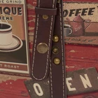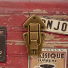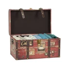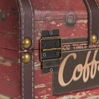 Medium orange "coffee " trunk with leather straps and brass handles-aa compact colorful storage trunk covered with coffee themed stamps, with PP fabric liner, and perfectly sized for small item storage. This charmer of a decorative storage trunk is a perfect accent trunk for entryways and kitchens. The coffee-lovers delight, this fun storage box is perfect for decorative storage you will enjoy having on display. Trunk measures 11.4'' H x 18.5'' W x 11.4'' d. Coffee inspried small storage chest with brass metal hinges and leather accent straps Hinged lid opens for space saving storage or use as a coffee table or low side table Smooth decoupage finish with dark orange background and coffee theme icons Plenty of storage space for scarves, games, throws, and much more 11.4'' h x 18.5'' w x 11.4'' d