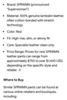 I wore these 1 time! I have kept them for a year believing that I would wear them, I haven’t. New year clearing what has not been used in a year. These are beautiful and the waist makes wearing them very comfortable. I have included info on how they get the leather to stretch in the photo section. Inseam-29.5” Hips-16” across Waist-15” across
