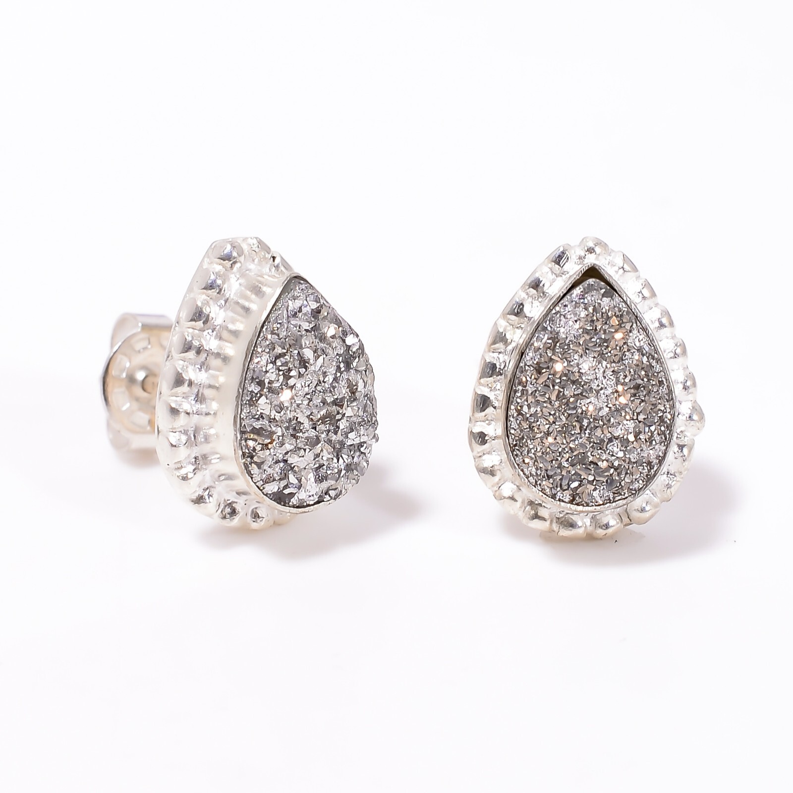 Welcome to Jaipur Silver Gallery Wedding Gift For Her 925 Silver Natural Titanium Druzy Stud Dainty Earrings Handmade Earrings, Sterling Silver Earrings, Titanium Druzy Earrings, Handcrafted Earrings SKU : - UKE-2149 Gemstone : - Titanium Druzy Stone Shape : - Pear Metal : - Sterling Silver Metal Purity : - 925 Earring Length : 0.5 Inches Earring Width : Inches _______________________________________________________________________________________ Amazing Properties of Silver ****************************** Tough and Long-lasting: Silver is incredibly strong, built to withstand daily wear and tear as well as tough environmental conditions. Easy to Shape and Design: Silver is like clay for skilled craftsmen, allowing them to create beautiful and intricate designs effortlessly. Great at Conducting Energy: When it comes to heat and electricity, silver is the go-to. It can quickly and efficiently transfer energy, making it ideal for various applications. Keeps Things Clean and Safe: Silver has a natural ability to keep harmful bacteria at bay, making it a reliable choice for promoting cleanliness and well-being. 3 Underrated Benefits Of Silver ****************************** Gorgeous Charm: Silver jewelry shines brightly, enhancing any outfit and fitting everyone's style with ease. Gentle on Skin: Silver is kind to your skin, reducing the chance of allergies and making it a favorite choice for accessories. Healing Vibes: Some believe silver jewelry has a soothing touch, possibly aiding in easing issues like arthritis, anxiety, and the blues. _______________________________________________________________________________________ For Mother's Day Gift For Father's Day Gift For Promise For Valentine' Day For Halloween Party For Christmas Day Gift For New Year Party For Mom For Her _______________________________________________________________________________________ If you need more help or want design tips, just give us a shout! We're lightning-fast in getting back to you. Every single thing we create is made by hand in our special workshop, and we put a whole lot of love and care into every piece. Thank you for stopping by! We're confident you'll have an amazing time shopping with us. We're here to make sure every moment you spend with us is filled with delight and satisfaction. Happy shopping!