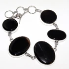 925 Silver Plated Banded Black Onyx Ethnic Bracelet Jewelry Size 9" JW