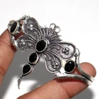 925 Silver Plated Black Onyx Ethnic Butterfly Bangle Jewelry Size FreeSize JW