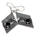 925 Silver Plated Black Onyx Ethnic Earrings Handmade Jewelry Size 2.3" JW
