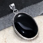925 Silver Plated Black Onyx Ethnic Pendant Gemstone Jewelry Size 2" JW