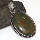 925 Silver Plated Bloodstone Ethnic Pendant Handmade Jewelry Size 1.8" JW
