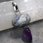925 Silver Plated Blue Kyanite Amethyst Long Pendant Jewelry Size 2" JW