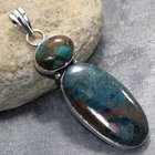 925 Silver Plated Chrysocolla Ethnic Long Pendant Jewelry Size 2.6" JW