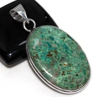 925 Silver Plated Chrysocolla Ethnic Pendant Handmade Jewelry Size 1.8" JW