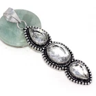 925 Silver Plated Crystal Topaz Jewellery Pendant Handmade Size 2.6" JW