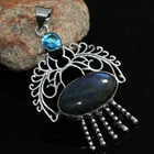 925 Silver Plated Fiery Labradorite Blue Topaz Pendant Jewelry Size 2.7" JW
