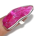 925 Silver Plated Pink Titanium Aura Quartz Ethnic Ring Jewelry Size US 7 JW