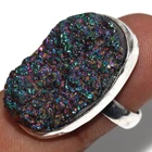 925 Silver Plated Purple Titanium Druzy Ethnic Ring Jewelry Size US 7.5 JW