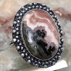 925 Silver Plated Pyrite In Rhodochrosite Ethnic Ring Jewelry Size US 6.5 JW