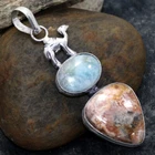925 Silver Plated Rhodochrosite Larimar Long Pendant Jewelry Size 2.6" JW