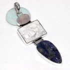 925 Silver Plated Sodalite Howlite Jewellery Pendant Handmade Size 3.3" JW