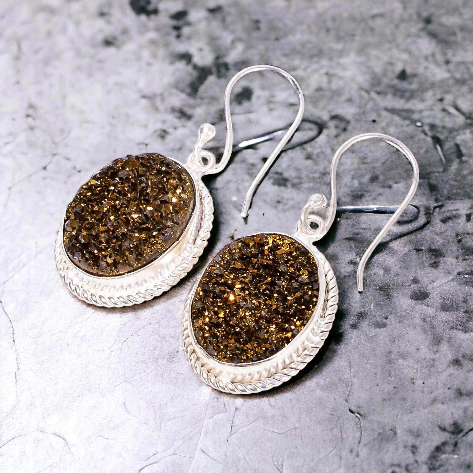 Welcome to Jaipur Silver Gallery Gift For Women Drop/Dangle Dailywear Earrings 925 Silver Natural Titanium Druzy Handmade Earrings, Sterling Silver Earrings, Titanium Druzy Earrings, Handcrafted Earrings SKU : - UKE-1971 Gemstone : - Titanium Druzy Stone Shape : - Oval Metal : - Sterling Silver Metal Purity : - 925 Earring Length : 1.5 Inches Earring Width : Inches _______________________________________________________________________________________ Amazing Properties of Silver ****************************** Tough and Long-lasting: Silver is incredibly strong, built to withstand daily wear and tear as well as tough environmental conditions. Easy to Shape and Design: Silver is like clay for skilled craftsmen, allowing them to create beautiful and intricate designs effortlessly. Great at Conducting Energy: When it comes to heat and electricity, silver is the go-to. It can quickly and efficiently transfer energy, making it ideal for various applications. Keeps Things Clean and Safe: Silver has a natural ability to keep harmful bacteria at bay, making it a reliable choice for promoting cleanliness and well-being. 3 Underrated Benefits Of Silver ****************************** Gorgeous Charm: Silver jewelry shines brightly, enhancing any outfit and fitting everyone's style with ease. Gentle on Skin: Silver is kind to your skin, reducing the chance of allergies and making it a favorite choice for accessories. Healing Vibes: Some believe silver jewelry has a soothing touch, possibly aiding in easing issues like arthritis, anxiety, and the blues. _______________________________________________________________________________________ For Mother's Day Gift For Father's Day Gift For Promise For Valentine' Day For Halloween Party For Christmas Day Gift For New Year Party For Mom For Her _______________________________________________________________________________________ If you need more help or want design tips, just give us a shout! We're lightning-fast in getting back to you. Every single thing we create is made by hand in our special workshop, and we put a whole lot of love and care into every piece. Thank you for stopping by! We're confident you'll have an amazing time shopping with us. We're here to make sure every moment you spend with us is filled with delight and satisfaction. Happy shopping!
