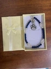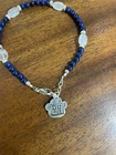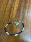 925 Sterling Dog Paw Charm Bracelet With blue & White Beads 8”/Clasp is .925 too