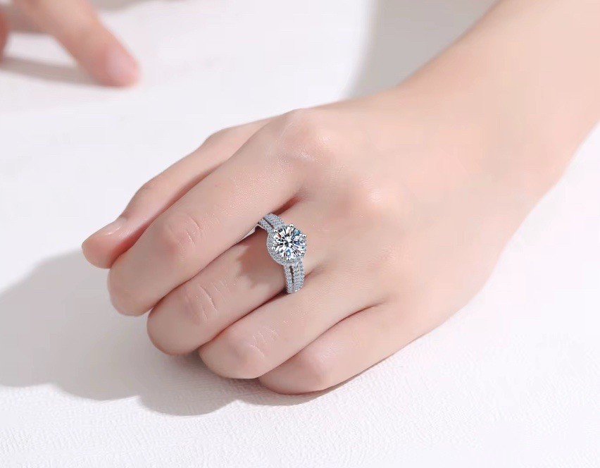 925 Sterling Silver 2CT Round Cut VVs Moissanite Ring