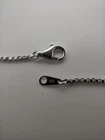 925 Sterling Silver Rhodium Plated Box Chain Necklace Lobster Clasp 16" #1185 Hand polished. No machine cleaning necessary. Measuring Tool not included. Combined Shipping! 1st item $4.59, each additional item is $1. Max shipping cost $10. Combine shipping for up to 7 days! We value YOU! Items are returnable and fully refundable! SilverSchark began as a hobby that grew into a business. We take old retired sterling silver jewelry and revitalize it to wearable condition. Utilizing an ultrasonic machine with sterling silver solution most items are restored to their original beauty. Occasionally scratches are buffed out and some minor repairs are made to bring these tired pieces back to life. Diamonds are always tested. If a piece is not stamped or is suspected of not being sterling silver, the item is acid tested for confirmation. Tests will always be listed in the description. We understand that patina is desired on vintage or antique items so some of the listings will not be cleaned and polished. The description of each listing will tell its tale of restoration. Combined shipping is always welcome! Just ask for an invoice if your cart doesn't look correct. Max shipping cost is $10 per shipment regardless of number of items!