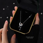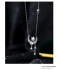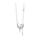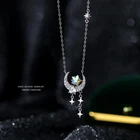 925 Sterling Silver Colorful Zircon Star Moon Pendant Necklace Women