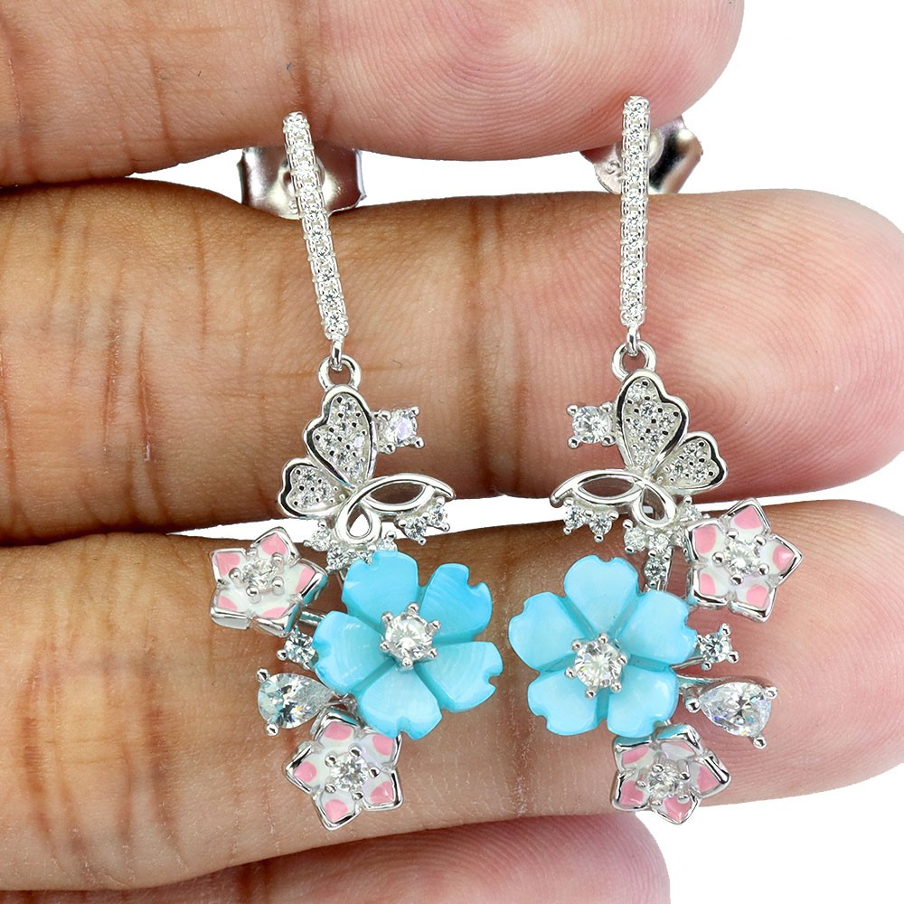 925 Sterling Silver Earrings Flower Mother Of Pearl Gemstone Enamel Flower PRODUCT ID EE2512180058 PRODUCT TYPE Earrings TYPE OF METAL 925 Sterling Silver PLATE 14k White Gold SIZE (US) MAIN STONE Mother Of Pearl OTHER GEMS Simulated Cz TOTAL weight 6.15 gram (silver + stone) DIMENSION * MOP 10.0 MM. * CZ 1.0 TO 4.0 X 3.0 MM. * FACE EARRINGS 40.0 X 16.0 MM. MAIN STONE SHAPE Flower MAIN STONE COLOR Blue CLARITY/GRADE Opaque TREATMENT Unheated ORIGIN Thailand HARDNESS 3 IF very high quality & Free from inclushions. VVS high quality with very slight inclushions. SI1 Good Quality with slight inclusions visible to the naked eye. SI2 include becoming prominent to the eye. I included. "Delivering excellent with eBay" we accept: PayPal payment which we prefer. FOR US BUYER >>>> PLEASE READ We are genuine seller from THAILAND. All products are originally 100% manufactured in THAILAND. Every items are 100% exported directly from THAILAND. However, we use shipping provider 'PP Shipping' who is a US distributor. The items will be allocated from PP Shipping's distribution office in Bellingham, WA, NV by USPS. Please understand that the tracking status will show starting from Bellingham, WA when you track the items. Feel free to ask for more details. We ship item(s) from Thailand to Worldwide in 24 hr. ( in working day ) after the payment was cleared. $12 - flat rate for a registered airmail, takes 20 - 40 days delivery. Thailand Post stops the service to Latvia, Lithuania, Malta, Moldova, Estonia, Georgia and Israel. Fedex cost up on destination with insure and online tracking. Destinations Asia NORTH AMERICA, CANADA EUROPE (WEST) EUROPE (EAST), SCANDINAVIA, MIDDLE EAST SOUTH AMERICA, AFRICA FEDEX EXPRESS (minimum) $70 $70 $70 $80 $80 Fedex rate will be charged by weight and destination area. A combine package is limited at 10 items within 10 days. Do not send your payment directly, just contact us to request total when you finish bidding (ebay cannot automatic combine items). Any single item weigh over 300ct is not eligible to combine. Buy over US $999 in one payment (10 items within 10days), Get Free FedEx shipment. TAX/CUSTOM: Custom fee is out of seller control. Buyer is responsible for the cost at arrived. Please give us an opportunity when you have questions with item received. Buyer can make agreement on discount or return the shipping in case of damage item. Seller is located in Thailand. So please contact seller for the instruction before return any item. Your communication is most important to solve the problem. International buyers note: Import duties, taxes, and charges are not included in the item price. These charges are the buyer's responsibility. Please check with your country's customs office to determine what these additional costs will be prior to bidding/buying.