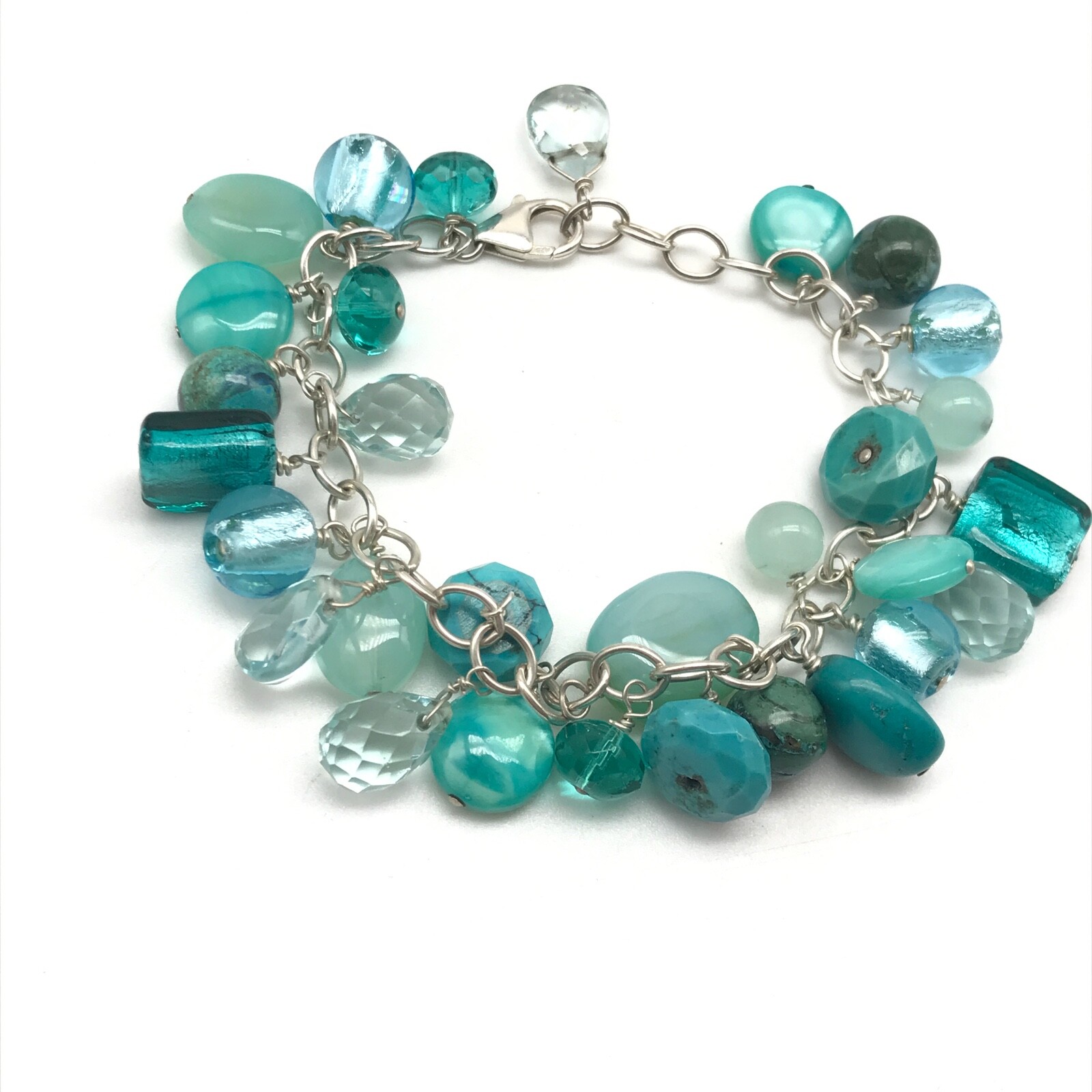 925 Sterling Silver Green Glass Beaded Charm Bracelet Item details: Length: 7.5" (can also be adjusted to be worn a bit smaller) Weight: 39.6 grams Marking: 925 - Please note, most of my store's items are vintage or pre-owned. Most items are in very good/good fine estate condition, but please also view all pictures. Well cared for. All sterling silver is marked 925 or tested. Please feel free to ask any other questions you may have. - Jewelry is packaged safe and securely with a gift box or pouch. - Thank you so much for shopping with me! P lease check out my store, I list new jewelry everyday!