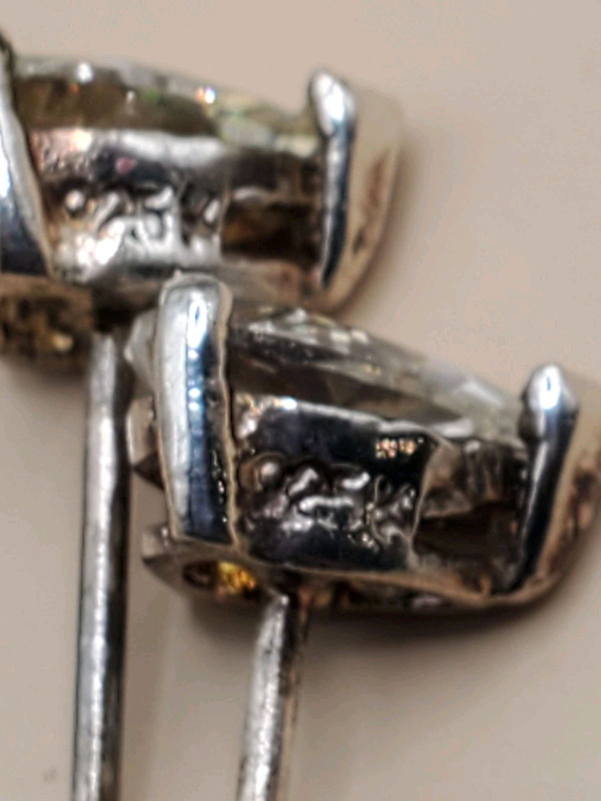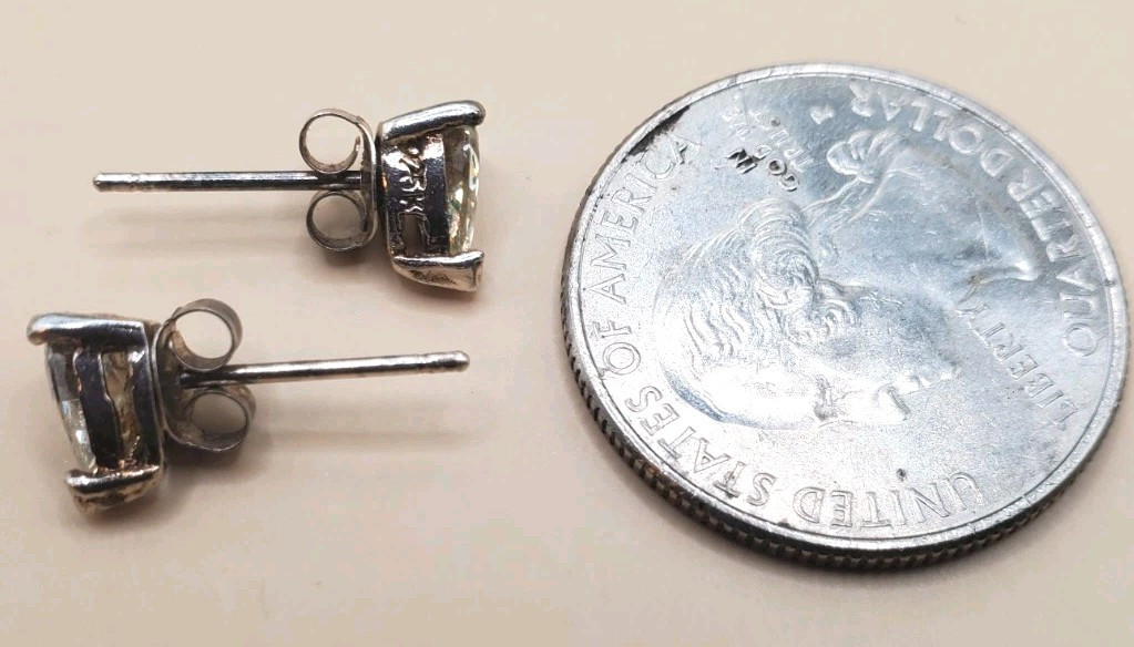 Elevate your jewelry collection with these vintage classic 925 sterling silver earrings, featuring a pear-shaped cubic zirconia stone. The CZ stones measure 8mm in length and 5mm in width and the pair weighs 1.4 grams. The earrings are signed 925 with a hallmark. Both butterfly earring backs are signed Sterling 925. These beautiful earrings are in good condition and included a new gold color ring gift box.