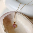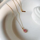 925 Sterling Silver Pink Crystal Pendant Necklace Women God