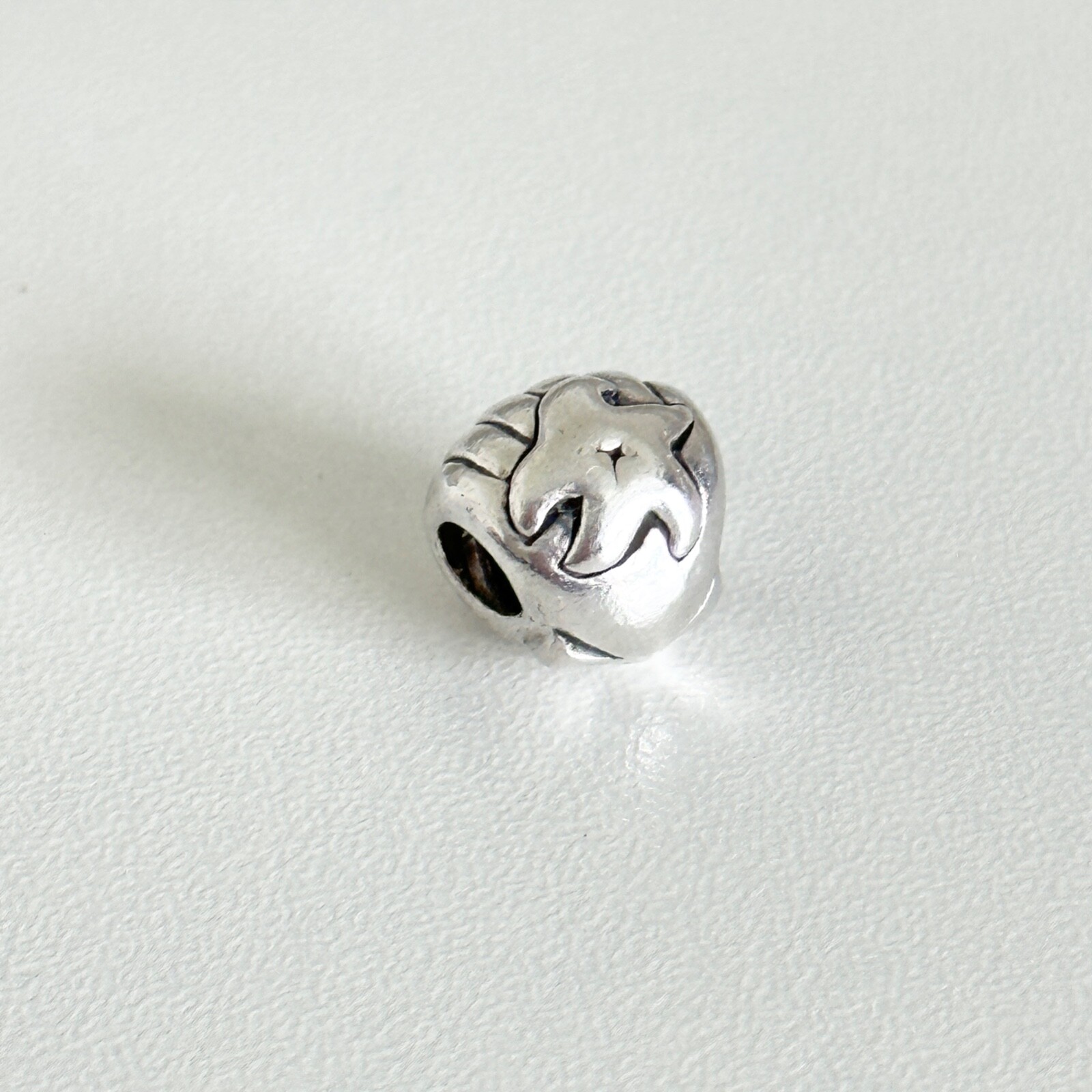 925 Sterling Silver Sea Shell Starfish Beach Ocean Sea Creature Theme Bead Charm Size: 10.5mm Weight: 4.7 grams Signed: 925 Compatible with Pandora, Trollbeads, Chamilia bracelets, etc. - Please note, most of my store's items are vintage or pre-owned. Most items are in very good vintage pre-owned condition. All sterling silver pieces are either marked 925 or tested if no marking. - Fast shipping, I ship the same or next business day! I also combine shipping. - Thank you so much for shopping with me and please check out my other jewelry listings, I post new items daily!