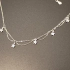 This is a new 17-inch double-layer choker necklace. It features a sterling silver S925 chain with multiple sparkling star charms set with CZ stones. It is an adjustable-length chain with a lobster clasp closure. Perfect for layering or wearing on its own.