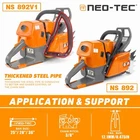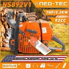 NS892 series 92cc Gas Chainsaw with 28'' Guide Bar Chain.The Power head and Bar Combo are two separate parcels. PRO Commercial 92cc Gas Chain Saw NEO-TEC pro gas chain saw power head NS892 fit for G660, all parts are compatible with MS660 066. 92 cc working power 5.2kw 7 HP Ideal for Big Wood Cut with Handle Bar NS892 chain saw fit for 25/28/36/42 inch guide bar which cuts through the woods or falling tree quickly and easier. Package Included 1PC Chainsaw Power Head 92CC 1PC Guide Bar Cover/Gloves 1PC Handle Tank Guard Protection Plate 1PC Tool Kit/Fuel Oil Mixing Bottle 1PC Instruction Manual 1PC Glasses/Earmuff Accessories It come with many accessories. Power: 5.2 KW Equipped with 3/8 Rim Sprocket Compatible with Up to 42 Inch Bar and Chain Engine Oil Selection Power Head Weight: 8.14 kg Country/Region : China Gasoline Ration: 35:1 Fuel Tank: 825 ml Engine oil Tank: 360 ml Assembled with High Quality Parts Chrome-Plated Cylinder HLHIC Carburetor Taiwan Crankshaft Torch Spark Plug Supper Power Igniton Coil Magnesium Crankcase,Starter,Sprocket Choosing The Right Guide Bar