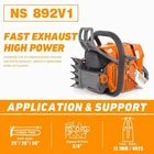 Neotec NS892V1 92cc Chainsaw with 36'' Guide Bar Chain.The Power head and Bar Combo are two separate parcels. PRO Commercial 92cc Gas Chain Saw NEO-TEC PRO Gas Chain Saw Power Head With Upgrade Handle Bar NS892V1 Fit For MS 660, All parts compatible with MS 660 066. 92 cc Working Power 5.2 kw 7 HP Ideal for Big Wood Cut with Plus Handle Bar NS892V1 Chain saw Fit For 25/28/36 Inch Guide Bar which cuts through the woods or falling tree quickly and easier. 1PC Chainsaw Power Head 92CC 1PC Guide Bar Cover/Gloves 1PC Handle Tank Guard Protection Plate 1PC Tool Kit/Fuel Oil Mixing Bottle 1PC Instruction Manual 1PC Glasses/Earmuff Choosing The Right Bar.