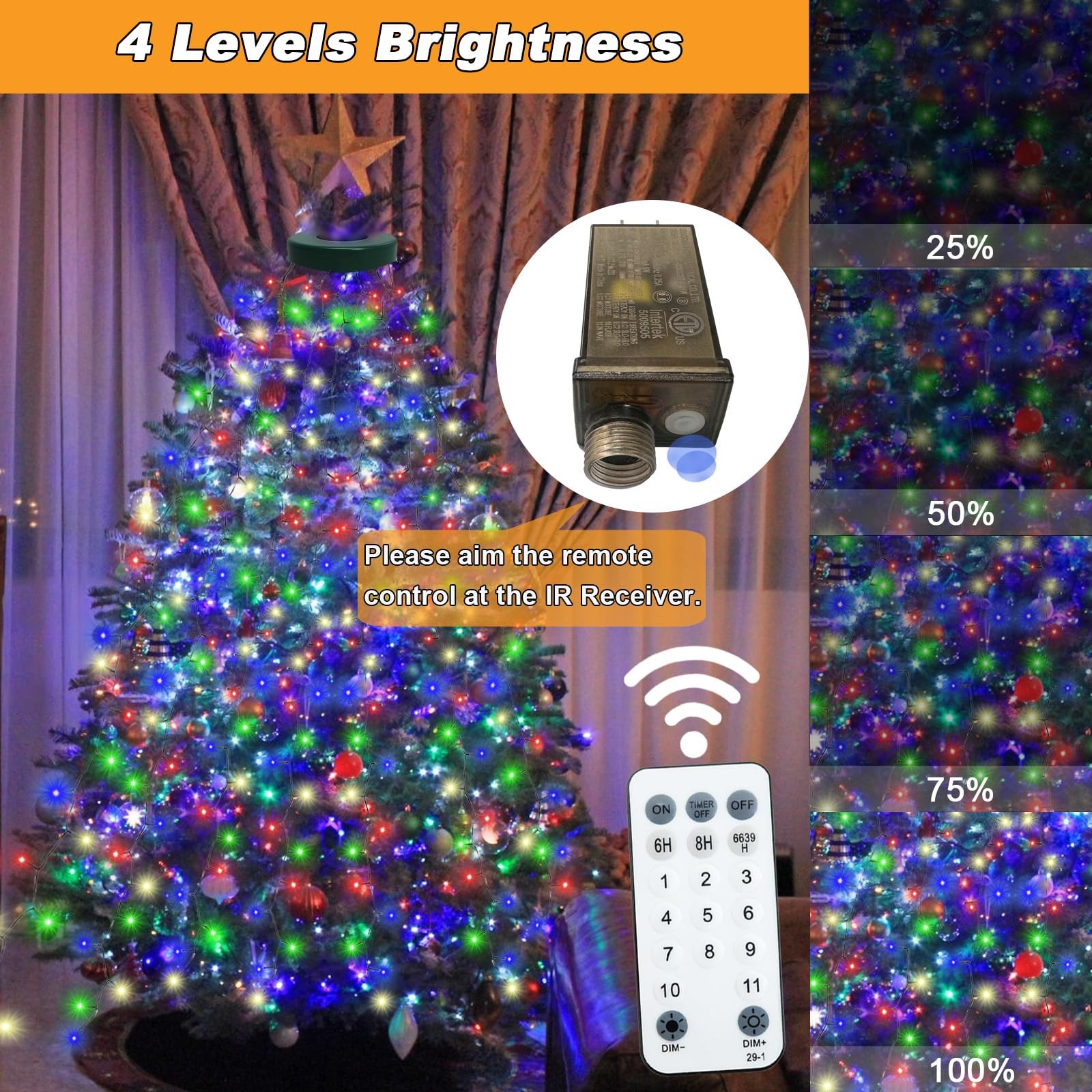 Notice: This product is customized by !!! Light Up Your Christmas Holiday- Our Christmas tree lights with ring features 480 LEDs, 9.2ft x 16 strings lights, 30 LEDS per strings, 5m/16.4ft power cord, suitable for the side length of the fir/pine trees is shorter than 9.2ft. Dress-up your Christmas tree with this sparkling string light, will quickly create a fantastic and joyful atmosphere for your Christmas season, light-up your life in the new year. 2-in-1 Tree Lights - This Christmas tree light can be turned to white color or multicolors, you can choose the lighting color according to the decoration style of your Christmas tree, without buying two sets of products, save your cost. 11 Lighting Modes - You can press the remote control or the plug button to switch the 11 lighting modes (Auto Cycle, White Steady ON, Multicolor Steady ON, Fixed Mixed Color1, Fixed Mixed Color2, Mixed Color Fading, Mixed Color Jump, White Color Twinkle, Multicolor Twinkle, Mixed Twinkle Auto Cycle, In Wave). You can use remote control to adjust 4 levels brightness: 25%, 50%, 75%, 100%. Notice: Make sure the remote control aims at the usb button within the sensing distance. Timer & Memory Function - Our Christmas tree fairy lights will save the last mode setting, no need to reset the mode every time. You can press the remote control to set the timer function: 6H (6hrs on, 18hrs off), 8H (8hrs on, 16hrs off), 6639H (6hrs on, 6hrs off, then 3hrs on, 9hrs off), or press the plug button for 3 seconds, green light on means timer is on (default 6hrs on, 18hrs off). Such smart functions make you save energy and easy operation. Safe & Waterproof - The Christmas LED string lights are made of waterproof material, can withstand light rain and water splashes, also work well in snowy weather, perfect for indoor & outdoor decoration. (Notice: the plug should be used waterproof receptacle cover when used outdoor) Widely Used - Simply place the ring over the top of the tree and let the 16 string lights hang down from the tree, then plug in and it will light up your Christmas. Multi Lighting Modes can fit various occasions needs, perfect for decorating Christmas trees in homes, shopping malls, communities, office etc.
