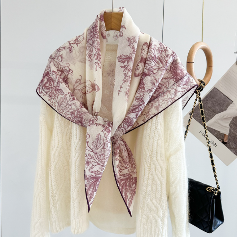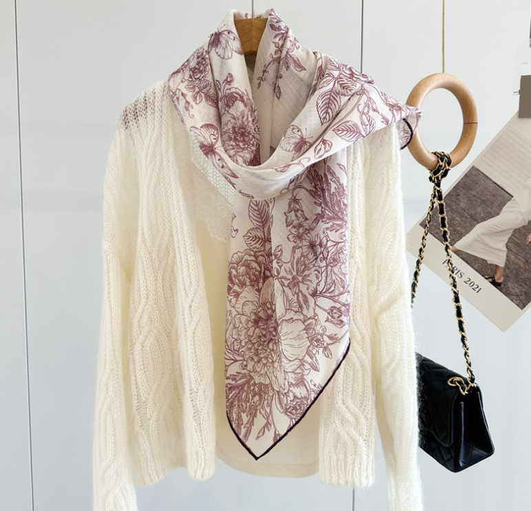 Pure Cashmere 95X95cm Square Scarf Women Neckerchief Wrap Red flower Print new