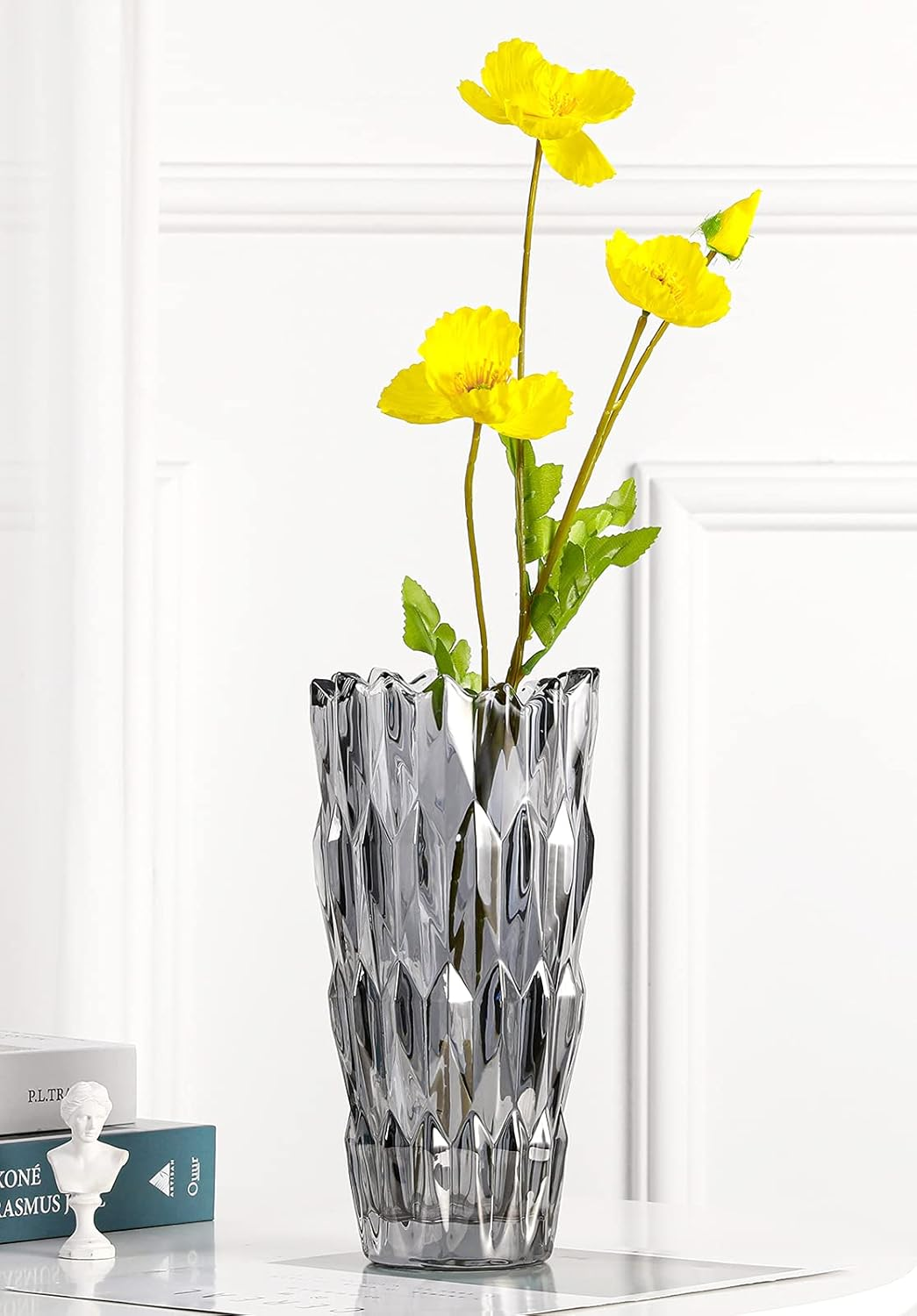 Store New Arrivals Add to Favorite View Feedback 9.6" High Gray Glass Flower Vase for Home Decor, Dining Wedding Table Office Holiday Party Centerpiece Decoration Description Style Art Deco Installation Type Decor Color Gray-diamond Style Pattern Solid Brand Yuccasly Material Glass Country of Origin China Room Type Di, Bathroom, Living Room, Bedroom Item Weight 3.3 pounds Batteries required No Theme Flowers Recommended Uses For Product Decor Shape Trumpet Finish types Glossy Number of Pieces 1 Finish Type Glossy Product Dimensions 4.7"L x 3"W x 9.6"H Occasion Women, Mother's Day, Wedding, Graduation Manufacturer Cosylove ⭐Dimensions:Gray Color,glossy surface, 9.6"in height, 4.7"inches in diameter on top, 3"inches in diameter on bottom ⭐Simple style: Serrated vase opening,the style is simple, clean contemporary art decoration , and different patterns are displayed from different angles, which is natural ⭐High quality: Using lead-free glass,high temperature handmade glass vase,safer and more environmentally friendly ⭐Used for home decoration, restaurant decoration, flower shop decoration, office decoration, perfect gift ⭐Smooth surface makes the vase easy to clean. You just need to wipe with a damp cloth ⭐Color:Gray ⭐Material: Glass, made by high temperature craftsmanship ⭐Package: 1*Gray glass vase ⭐Easy to clean: the surface is smooth, you only need to wipe it with a damp cloth ⭐Note: Hope you would like our vase, Thank you ABOUT US We offer the best prices around on high quality products. Our E-store includes media such as books, movies, music and games while offering electronics, toys, sporting apparel, clothing, tools, general home, garden items and more. SHIPPING We are always working hard to ensure your package arrives as soon as possible. Please understand that some factors like weather, high postal traffic, and the performance of shipping companies are outside of our control. We offer free shipping to the lower 48 states and ship within 2 business days of payment, usually sooner. We do not accept P.O. Boxes. Please provide a physical address. RETURNS We offer a 30-Day Return Policy on items which you are not completely satisfied with. You have the option for a full-refund or an exchange of the item. No returns are available on items shipped outside of the USA. PAYMENT We accept PayPal. CONTACT US This page content is yet to come Please ad us to your favorite seller and visit again later Thank You