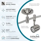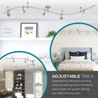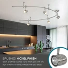 Brighten your space just the way you want it with the Catalina Transitional 5-Light Flex Track Ceiling Light. This light fixture comes ready for application, with five highly efficient GU10 LED lights that come integrated into the track to save you time, energy, and money. Made from durable metal materials with a brushed nickel finish, this fixture is both beautiful and long-lasting. The flexible track rail can be bent, arched, and angled to fulfill your exact interior design vision, and the adjustable cylinder shades offer even more freedom in directing and positioning illumination to your liking. Connect this lighting fixture to a standard dimmer switch, and the luminary settings can be adjusted and customized until you reach your preferred level of brightness. This light is also smart home compatible, and can be plugged into a smart outlet or smart switch to connect with Alexa, Google Home, or other smart home devices. With articulate provided instructions in English, Spanish and French, this ceiling light features a center canopy which can be mounted to any ceiling or wall junction box with the included installation and mounting kit. To build onto this track light, additional fixtures with joiners may be purchased and added, resulting in a brilliant light display with few limits. Dimensions- 8.70 H x 4.33 W x 96 L inches · FLEX TRACK CEILING FIXTURE: Flexible track can be bent, arched and angled before being mounted to the ceiling for a customizable overhead lighting design · SUBTLE DESIGN: Features a durable metal construction with a brushed nickel finish to blend into any home décor · ADJUSTABLE LIGHTS: Includes 5 integrated GU10 LED bulbs, each hardwired into the fixture and housed in adjustable cylinder shades to direct lighting where you like. Lightbulbs are able to br replaced. · SMART HOME COMPATIBLE: For increased convenience, this overhead light can be set up using a smart outlet or smart switch (sold separately) to easily connect to Alexa, Google Home or any other smart home device · EASY ASSEMBLY: Dimensions- 8.70 H x 4.33 W x 96 L inches. This versatile fixture can be mounted to any standard ceiling or wall junction box from its center canopy and connected to a standard dimmer for further lighting customizations