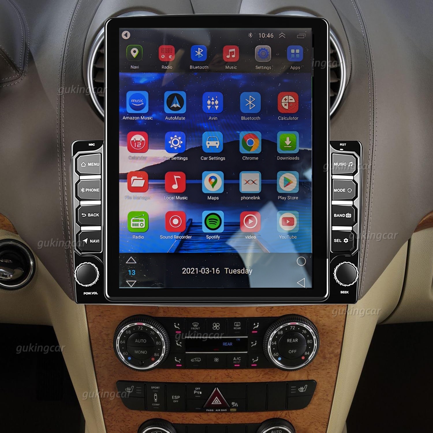 Specifications: System:Android 13.0 Chipset:8227L-DEMO Screen size:9.7'' Memory:2GB (RAM)+32GB (ROM) Screen resolution:1024*768 Mirror link:Android/IOS Radio chip:MTK Power output:4*45W Work temperature:-40℃-80℃ Steering wheel control function:Support Bluetooth version:4.0 Power amplifier chip:AC7388 Radio Band:FM/RDS Video output:Support Reversing input: Support (item comes with a backup camera as gift) External microphone: support Maps:Built-in offline maps WIFI:Support USB:Double USB interface Audio format:APE/FLAC/WAV/MP3/WMA etc Video format:MKV/RMVB/AVI/MP4/MDV etc Picture format:PNG/JPEG/JPG/GIF/WBMP/BNP etc Factory setting keyword:8888 Language:Chinese/English/French/Italian/Korean/Japanese/Arabic/Spanish/Portuguese/Russian/Turkish/Vietnamese/Hebrew/Polish/German This is NOT plug and play, you'll need cut wire to install !!! does NOT fit model with JBL Product Description Specifications --Screen size:9.7'' --Memory:2GB (RAM)+32GB (ROM) --Screen resolution:1024*600 --Mirror link:Android/IOS --Power output:4*45W --Bluetooth version:4.0 --Video output:Support --External microphone: support --USB:Double USB interface --Car logo change:Support --Audio format:APE/FLAC/WAV/MP3/WMA etc --Video format:MKV/RMVB/AVI/MP4/MDV etc --Picture format:PNG/JPEG/JPG/GIF/WBMP/BNP etc -- Factory setting keyword:8888 Upgraded dual system mirror link GPS&wifi built-in offline maps. With WiFi connected, click "Here we go" APP to download maps of any country you need (via menu - download map) for offline navigation.such as , Sygic, Waze, IGO, etc. With wifi, you can also downlaod your favourite android app from store, watch online video, it support to play 1080P format Backup Camera Input Come with a free backup camera connect with the backup camera, when you reversing,it will turn into the parking mode automatically, and also can record the traffic. Steering Wheel Control Function Support original car steering wheel learning. This device does not support add canbus or upgrade system version, SWC function doesn't work if cars need a canbus. Bluetooth/FM radio/Colorful Backlit Buttons Built-in Bluetooth for making hands-free calling and playing Bluetooth music, phone contacts and view Call log. Easy connect to phone, more safer when driving. FM radio with high-quality stereo FM frequency: 87.5-108MHz Built-in FM with 18 preset stations, you will never miss your favorite radios anymore. Support colorful backlight settings, seven color backlights are available Wiring and Installation "ACC": Connect the car ignition detection cable "B +": Connect it to the positive terminal of the car battery. "GND": Ground / Iron / Negative battery. "KEY1/ KEY2": Only one of the cables is selected for wiring depending on the compatibility of the model and the steering wheel control system. If you use two steering wheel controllers, you need to connect 2 cables. "BACK": Connects to the rear camera input port. "Lamp Control": Connect it to the small lamp in the front of the car to turn on the button backlight. "ANT CONT": Connect the car radio antenna (no antenna, no wiring). Signal Input: Connect to the input port of the reversing camera. "Audio / Video": See wiring diagram (Note: "AMP-CON" cable has no output voltage and must supply the amplifier or subwoofer via the car's ACC ignition cable). How to connect power cable: Red wire connects to ACC (ignition switch) Yellow wire connects to 12V battery positive Black wire connects to 12V battery negative Note: The Installation size of this car radio is 180(W)*75(H)*70(D)mm, Please compare the size with your car dashboard. Features: ●HD 9.7'' 2.5D Tempered Glass Mirror auto radio player ●Vertical screen: the display effect is more three-dimensional ● Upgrade Android Auto & Carplay : Support Wired & Wireless Android Auto, Support Wired & Wireless Carplay . NO extra dongle required !!! ●Built-in GPS Navigation: Users can purchase directly from play store for offline navigation. With wifi connected, Google Maps can be used perfectly, you can go anywhere you want and never get lost again. ● Built-in WIFI: Connect to WIFI, and you will find a new world,the most convenient one is the online map. ●Rear view camera: car is connected to the reverse gear to automatically switch( backup camera included ) ●Steering wheel control: Through it you can control the functions you need by steering wheel, more convenient ●Built-in Bluetooth with A2DP/Hands Free/Phone book:Bluetooth hands-free calls,Bluetooth music player,Auto loading phonebooks ●Driving recorder: You can choose a recorder, and the car has playback, the evidence can be retained ●Double USB adapter input ●Support file manager: Support download, install and delete over thousands of android apps ●Support multilanguage: Support languages, up to 40 national languages ●You can enjoy music from you mobilephone without any cables, and also support USB connetion. ●FM Radio: Online music you can transfer the music to the car stereo by FM to enjoy the original car stereo sound,with 18 preset stations ● Time Setting:You can use the network or GPS to open the date and time automatically, or you can adjust it manually. ● Built-in carplay system : You can choose wired connection or wireless connection to carplay, connect to Apple mobile phone, access mobile phone address book, mail, notification, map navigation, music, video and other information, and realize voice control. ● Wired & Wireless Android Auto : Android Auto car system can closely integrate the user's Android phone and player, and realize navigation, make calls, send and receive information, listen to music and other operations through data cable connection; Specifications: System:Android 13.0 Chipset:8227L-DEMO Screen size:9.7'' Memory:2GB (RAM)+32GB (ROM) Screen resolution:1024*768 Mirror link:Android/IOS Radio chip:MTK Power output:4*45W Work temperature:-40℃-80℃ Steering wheel control function:Support Bluetooth version:4.0 Power amplifier ch