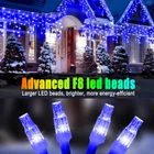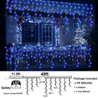 Christmas lights: 1,The LED string lights create a warm, joyful, stylish, romantic and festive ambience, ideal christmas decorations for bedroom yard porch garden patio backdrop courtyard wedding party holiday decor.Perfect gift for your Christmas decor needs. 2,The outdoor/indoor Xmas lights adopt rattan style and each group is 4/5/7 LED. The space between drops is approximately 2.5FT. An Improved 11.5ft of extension cord is long enough to plug into the power supply from anywhere. 3,The christmas lights outdoor are wrapped with a milky white sleeve and PU thermasol, maintains its plasticity and sealing properties without cracking and hardening of the surface. It has good adhesion and extremely low water vapour transmission rate, it forms an excellent moisture-resistant system. 4,Outdoor christmas lights is high brightness: Features shatter-resistant acrylic LED bulbs with a concave lens,and the led beads up to 90% transmittance, for a brilliant burst of light that looks great even from a distance 5,The curtain string lights decorations is well packed and easy to untangle.The light string unfolded neatly and no hassle to begin installing. Near perfect length to wrap the eave of the back porch, front porch and screened porch. Details: LED Qty: 480/ 450/ 900/960 Length: 49FT(15m)/ 98FT(30m) Extension Cord: 11.5FT(3.5m) Voltage: 30V(DC) Rated Power: 6 Watts Material: Copper+PVC What's in the box: 1 x F8 900 LED lights 1 x UL Power Adapter 6 x User Manual Warm Tips: The christmas decorations string lights are perfectly suited for the outdoor and indoor. Kindly please keep the UL power adapter from water and fire. π [F8 Upgraded Long Size Outdoor decor Lights] Brighten up your outdoor spaces with our 98-foot Long Size Outdoor Ice String Lights, featuring 900 premium LEDs. With F8 larger beads(0.3inch) for enhanced brightness, these weather-resistant string lights cast a magical glow, transforming any area into a winter wonderland. Perfect for trees, patios, or paths, their even, vibrant illumination adds festive charm to your decor all year round. π [8 Modes with Timer and Memory Function] Add versatility to your outdoor Christmas lighting with 8 modes including Combination, Wave, Sequential, Slow Glow, Chase, Fade, Flicker, and Constant. Set your favourite mood for every event with a user-friendly timer. The memory function remembers your preferred setting for effortless use. π [Waterproof For Outdoor Use] Elevate your outdoor events with our waterproof, hard-wearing led Christmas lights. Great for weddings, birthdays, and holidays, these Hard-wearing outdoor Christmas lights brave all weather to keep your celebration brightly lit. Their expandable design and large beads ensure consistent, vivid illumination, even in challenging conditions. π [Safety UL Listed] Wrap your home in the warm, safe glow of our UL Listed Christmas tree lights. Celebrate the season with the peace of mind that comes from knowing your decorations are certified to the highest safety standards. Let our lights be the guardians of your holiday cheer. π [Energy Efficient Light Strings] Illuminate your Christmas with the care of our energy-efficient led light strings, designed to spread joy without draining the Earth's resources. These lights are a gift to both your festive spirit and the environment, ensuring a greener holiday season.