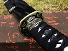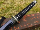 Product Parameter: Overall: 103 cm / 40.6'' Blade: 70 cm / 27.6'' Tsuka: 26 cm / 10.24'' Width: 3.2 cm / 1.26'' Thickness: 0.7 cm / 0.28'' HRC(hardness): 56 Craft: Fully hand forged, water quenching, electroplate blue, hand-polishing, etc. Material: 1095 high carbon steel Shape: Shinogidukuri Nakago: Full-tang ( 2 meguki fix the handle vertically, very firm) Handle: Hard wood core, hineri maki Fittings: Alloy Seppa/Habaki: Brass Saya: Black wood scabbard The steel we use is not the normal steel with the truck or cars or other life electrics, the steel use for the blade contents much more carbon and the purity can not be comparable. * It's a functinonal sword. After test, it can cut bamboo, A4 paper and water bottles,etc . * Package include 1sword with saya+1bag.($30 to add a box ) Manual grinding: Using the unique bright stone of Longquan Town, hand grinding, very test sword casting skills and technology, grinding out the pattern effect is special texture! Ancient quenching: Modern vacuum heat treatment can meet the hardness requirements of most swords,but the traditional quenching method has better effect, can soften the medium strip steel, and the hardness is higher. Additional Service About us Sword Noun Explananation Delivery details Sword maintenance Additional Service It's free for engraving English words, Chinese Characters and Japanese Kanji , etc. You need pay extral $20-30 for engraving patterns. Sharpness Most of our blades are sharp. We can also make the blade unsharpened for free if you require. Matching Swords Set If you buy one katana, we can make a matching Wakizashi or Tanto for you. The price varies from different swords. Please contact us if you need make custom matching set. About us We have our own sword-casting factory. The factory is located in Longquan, a small town with a long history of sword-casting in China. Most of the famous Swords in China are made there. Rich raw materials, skilled technology, traditional sword casting technology from generation to generation. Manual production really takes a lot of time. We will prepare most products in advance ,and arrange delivery within about a week. However, sometimes the delivery time is delayed due to weather or raw materials,etc. we hope to get your understanding. Feel free to contact us to inquire about the status of your order. Each handmade sword is unique. Our swords are great for gifts or for your own collection. Our swordsmithing master makes every sword attentively, hope you can feel our sincerity. We will also give you the best customer service, any questions please feel free to contact us. Sword Noun Explananation Quenching After the blade has been shaped, the sword would be quenched. We quench our swords in either water or oil. Water quenching produces a tougher edge which can also be hardened further more using clay. Blades quenched in oil are still considerably hardened and do have superior flexibility compared to a water quenched blade. Folded Steel : In the forging process , the most useful process is the folding, where the metals are forge welded, folded, and welded again, as many as 124 times(15 times is the best). The folding removes impurities and helps even out the carbon content, while the alternating layers combine hardness with ductility to greatly enhance the toughness. The less impurities, the harder and sharper the blade will be. We have done cutting tests on the blades. it can cut bamboo(young bamboo tree), grass mattings and slice paper(The blade should be tilted at 45 degrees). Clay tempered : To maximize both the cutting edge and the resilience of the sword spine, a technique of differential heat-treatment is used.The sword is painted with layers of clay before heating, providing a thin layer or none at all on the edge of the sword, ensuring quick cooling to maximize the hardening for the edge.A thicker layer of clay is applied to the rest of the blade,causing slower cooling.This creates softer,more resilient steel, allowing the blade to absorb shock without breaking. About 1095 carbon steel : The best quality of high carbon steel is at 1095, the carbon content was 1.03%, and the element contains a small amount of chromium, molybdenum, vanadium, after heat treatment can reach HRc58-60 hardness, toughness is very good, but not resistant to rust, more be applied to traditional european-style hunting knife, large cutting knife and military dao. Such as the United States during world war ii "KA - BAR" saber is in 1095 as the blade material. Kobuse : The vast majority of modern katana and wakizashi are the maru type which is the most basic, with the entire sword being composed of a single steel. The kobuse type is made using two steels, which are called hagane (edge steel) and shingane (core steel). Steel of different materials is forged and welded together to hammer the basic shape of the sword. This allows the overall blade to have a higher toughness and absorb a lot of impact. Reducing the possibility of breaking or bending to some extent. Makes the blade not only has high hardness, but also has super toughness Delivery details a) Import duties, taxes and charges are not included in the item price or shipping charges . These charges are the buyer’s responsibility. b) If you do not receive the package, or the package is damaged during transportation. We'll take care of it. Please feel free to buy. c) If it is mentioned in the product description that the package includes the sword bag or sword holder , the style will be random. The sword holder or sword bag on the ebay picture is the props we use for shooting. If you really like a style, please contact us before buying. d) If you have any problem after recieve the package (wrong size, wrong style, etc.). We always provide you with the best after-sales service. Please give us a chance to help you before you give us a bad feedback . Thank you very much! Sword maintenance